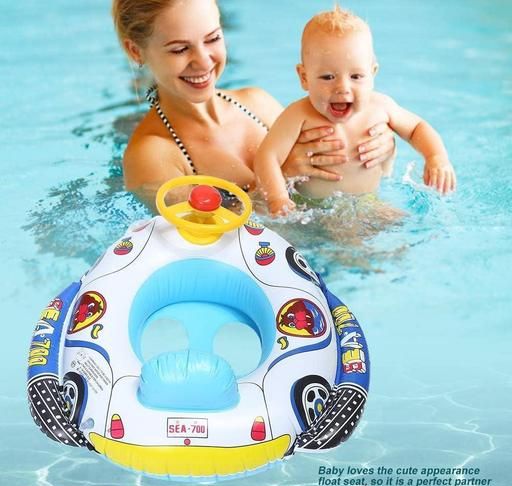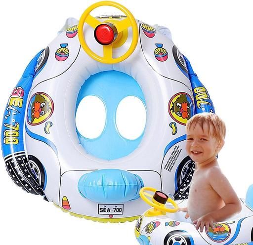 CAR SHAPE UNIQUE DESIGN: The appearance of a cartoon car shaped could improve the interest of baby to learn to swim. Swimming tube has double holder inflation inlet and come with a toy steering wheel with the real sounding horn. Kids swimming tube