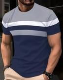 Name: Men's Color Block Round Neck T-Shirt - Casual Summer Sportswear, Stretch Polyester Blend, Comfortable Knit Fabric for Casual Attire, Casual Outings | Relaxed Fit Top | Durable Fabric, T Shirt