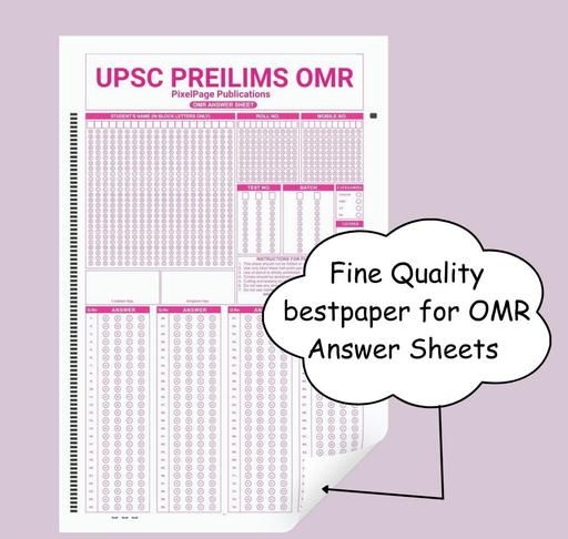Prepare confidently for the UPSC Prelims with the exceptional OMR Answer Sheets with 100 MCQs from PixelPage Publications. Crafted from high-quality 70 GSM paper, these sheets provide a smooth writing surface that resists smudging and bleeding, enhancing your accuracy. Specifically designed for the UPSC Prelims, the clear layout features bubbles for precise answer marking. The flexible loose sheet format allows you to organize and rearrange your answers, making your exam preparation efficient and effective. Compatible with all types of pens and pencils, you can choose your favorite writing instrument. These OMR sheets simulate a real exam environment, helping you refine your time management and strategy. Engage in meaningful practice and self-assessment to identify opportunities for growth. Whether you're gearing up for UPSC Mains & Prelims, MPSC, or other competitive exams, order your pack today and empower your journey towards success!