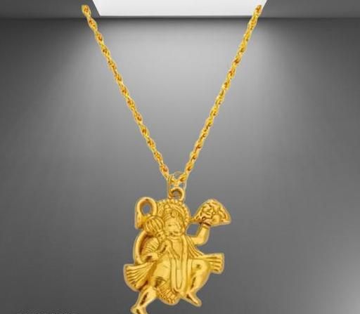 Name: Trending Stylish New Gold Chain & Lord Hanuman Bajrangbali pendent pack of 2 item