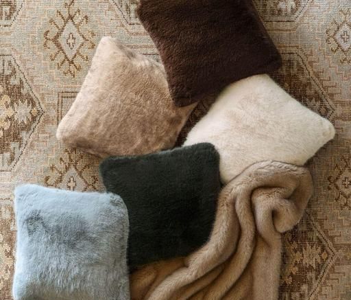 Name: Set of 5, Fur Cushion Covers - Neutral Colors