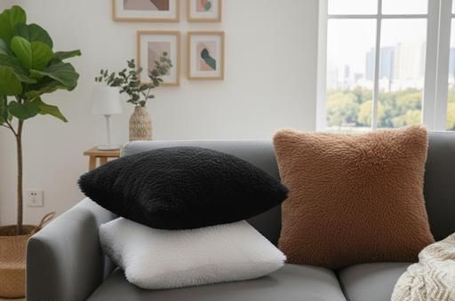 Set of 5, Fur Cushion Covers - Neutral Colors