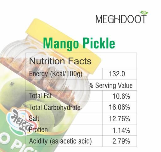 Savor the bold and authentic taste of MEGHDOOT Mango Pickle, made from carefully selected raw mangoes, blended with aromatic spices, and preserved in pure mustard oil. This traditional recipe delivers the perfect balance of tanginess, spice, and rich flavors, making every meal more enjoyable.