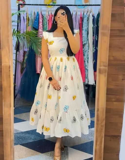 Name: New Design Women Half Sleeves Printed Middy Gown || Women Gown || Women Dress || Women Frock || Frock for girls || Dress for women || Printed Dress