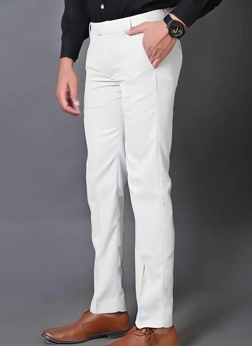 Name: Men White Regular Cotton Blend Formal Wear Trouser Pant/Office wear Pant/Men Regular Fit Pant