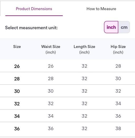 28 (Waist Size: 28 in, Length Size: 32 in, Hip Size: 28 in)