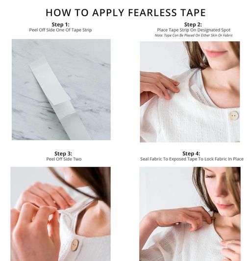 - SKIN-FRIENDLY MATERIAL: tape for fashion is made of reliable medical-grade garment adhesive that is perfect for those with sensitive skin. Fabric tape can be used on the skin directly without causing any rashes or irritation. Each transparent double-sided tape is carefully produced that fits all kinds of color skin to ensure it perfect comfort for your skin.