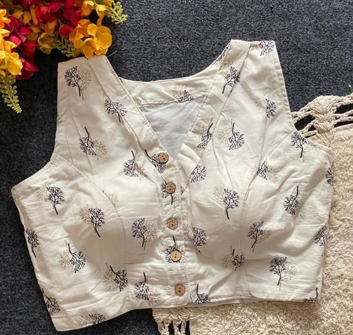 Name: KHADI COTTON HANDLOOM COTTON PRINT FANCY BOTTON BOAT NEACK FRONT HOOK BLOUSE