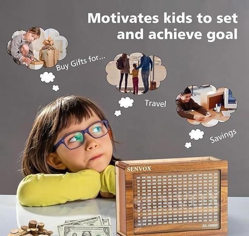 Name: Wooden Moneey Piggy Bank, Moneey Saving Boxx, Gullak with Savings Chart, 120000 Rupeess Goal Tracker, Cash Collection Bank for Kids and Adults
