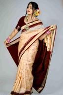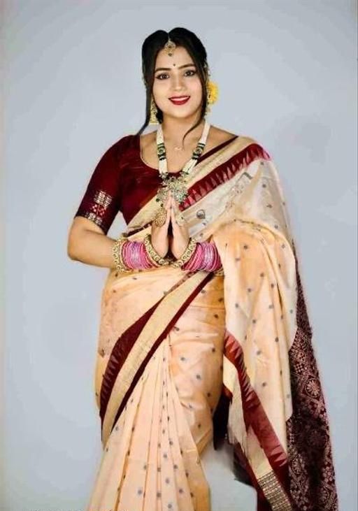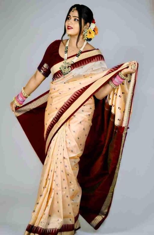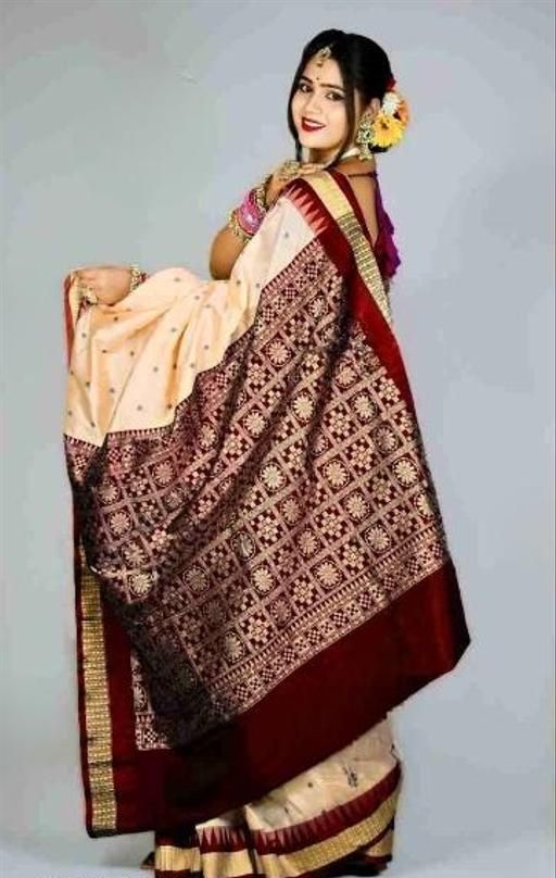 (1)The Sambalpuri Saree in poly silk is a stunning traditional Indian garment known for its exquisite craftsmanship and vibrant colors. With a length of 5.50 cm, this saree drapes elegantly, highlighting the wearer's grace and beauty. The accompanying blouse, measuring 0.90 cm, perfectly complements the saree with its contrasting design, adding a touch of uniqueness to the ensemble. The saree's anchal (pallu) features intricate patterns and motifs, showcasing the rich cultural heritage of the Sambalpuri region. Whether worn for festive occasions, weddings, or cultural events, this Sambalpuri saree in poly silk is sure to make a captivating and timeless fashion statement.