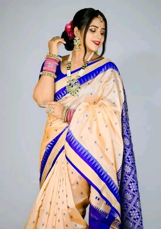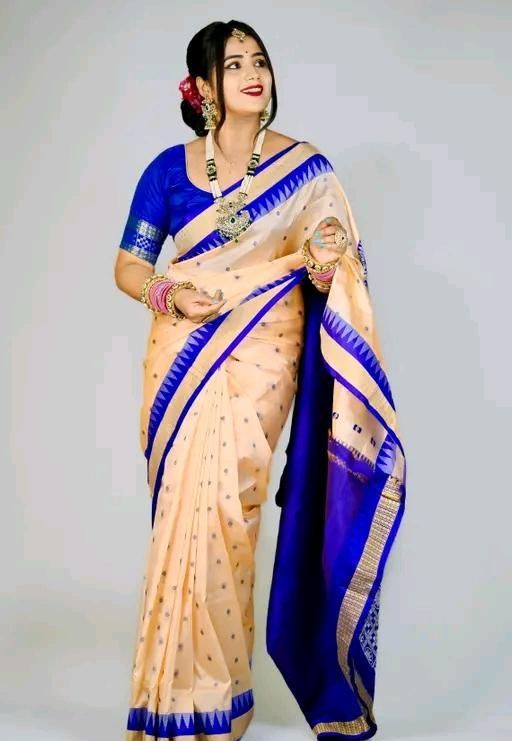 (1)The Sambalpuri Saree in poly silk is a stunning traditional Indian garment known for its exquisite craftsmanship and vibrant colors. With a length of 5.50 cm, this saree drapes elegantly, highlighting the wearer's grace and beauty. The accompanying blouse, measuring 0.90 cm, perfectly complements the saree with its contrasting design, adding a touch of uniqueness to the ensemble. The saree's anchal (pallu) features intricate patterns and motifs, showcasing the rich cultural heritage of the Sambalpuri region. Whether worn for festive occasions, weddings, or cultural events, this Sambalpuri saree in poly silk is sure to make a captivating and timeless fashion statement.