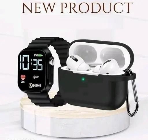 New Combo Offer Airpod Pro True Wireless Bluetooth Earphones with 3 Hours of Playtime with Stylist Watch Free & Compatible for all Smartphones (White)