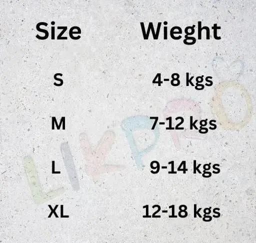 Size S, Size M, Size L diapers