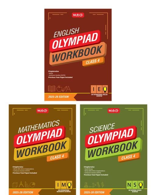 Name: MTG Class-4 NSO-IMO-IEO (Science, Mathematics & English) Olympiad Workbook Combo (Set of 3 Books) | MCQs, & Achievers Section - SOF Olympiad Books For 2025-26 Exam
