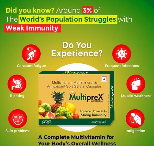 Name: Multiprex Multivitamin & Multimineral Capsule – Daily Health Supplement – Boosts Immunity, Energy & Overall Wellness - (10 Capsule Each) - Pack of 06