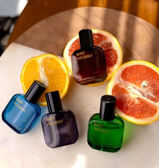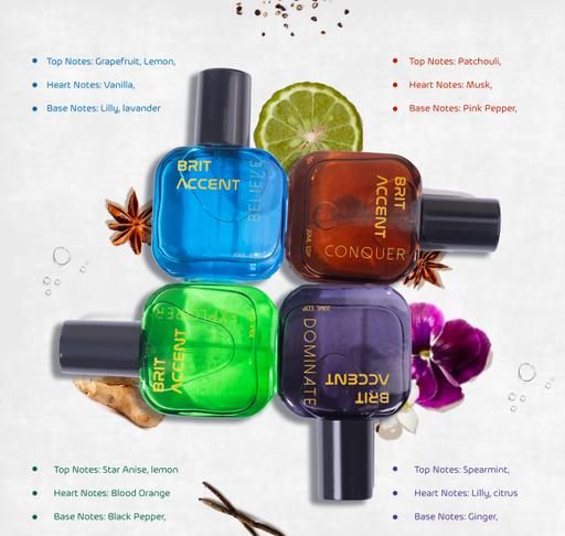 FRAGRANCE NOTES: Each scent features unique combinations - Believe with lemon and amber, Conquer with lavender and patchouli, Dominate with bergamot and vanilla, Explorer with orange and musk