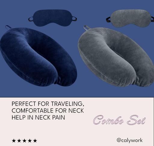 Name: Calywork Dark Blue & Grey Neck Pillow Combo Set, featuring a pack of two high-quality neck pillows and matching eye masks. Whether you're on a plane, train, or road trip, this set ensures you and your travel companion experience restful and comfortable journeys.