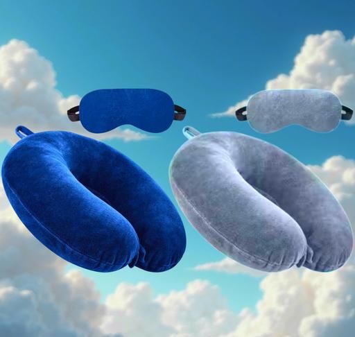 Product Name: Calywork Dark Blue & Grey Neck Pillow Combo Set, featuring a pack of two high-quality neck pillows and matching eye masks. Whether you're on a plane, train, or road trip, this set ensures you and your travel companion experience restful and comfortable journeys.