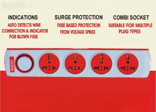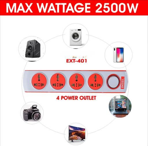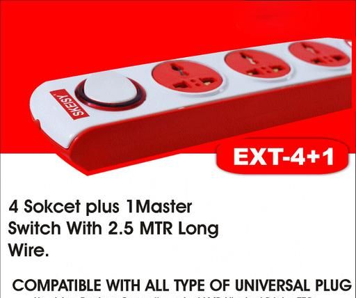Name: EXT-401 CAPACITY 10AMP, AND 2.5 METER WIRE AND SWITCH INDICATOR, 240V,,RED 4 Socket Extension Boards (White, Red, 2.5 m)