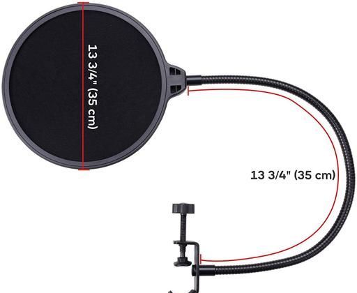 Name: 6-inch Studio Microphone Pop Filter Shield Mask, Double Mesh Wind Screen with 360° Flexible Gooseneck and Quick Mount or Release Clamp for Recording, Singing and Broadcast Studio