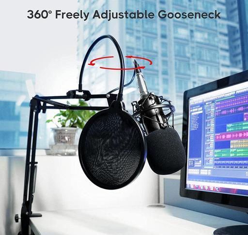 ADJUSTABLE GOOSENECK: The metal gooseneck holder fully supports the filter's weight and keep it in place. can adjust the angle and distance between the screen and the microphone.