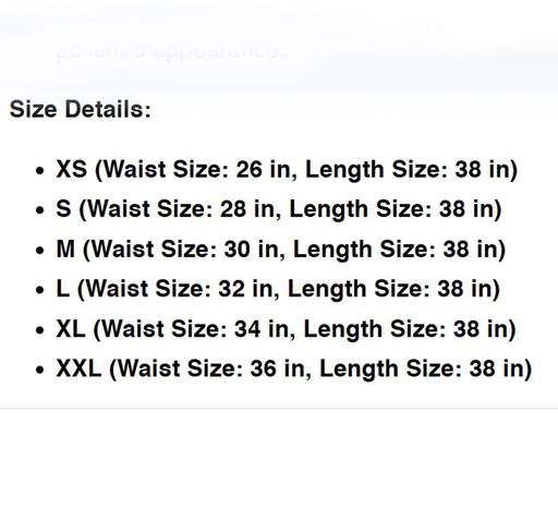 L, XL (Waist Size: 34 in, Length Size: 38 in, Hip Size: 40 in)