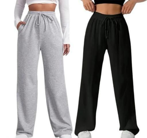Name: Women wide leg jogger pant with two pockets black and grey pack of two