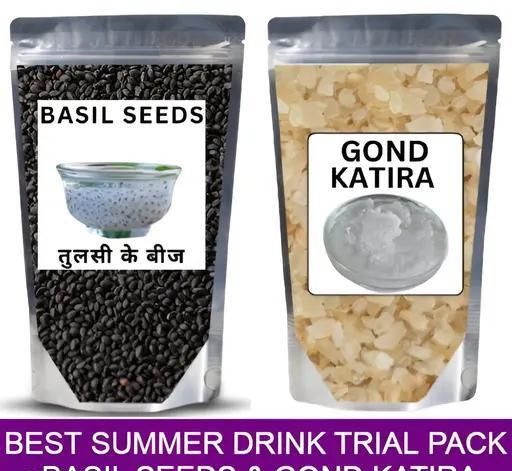 Best Summer Drink Combo Pack - Gond Katira 50 Gm & Basil seeds 50 Gm | Perfect for Summer hydration | Tragacanth Gum | Cooling Properties (Total = 100 G)