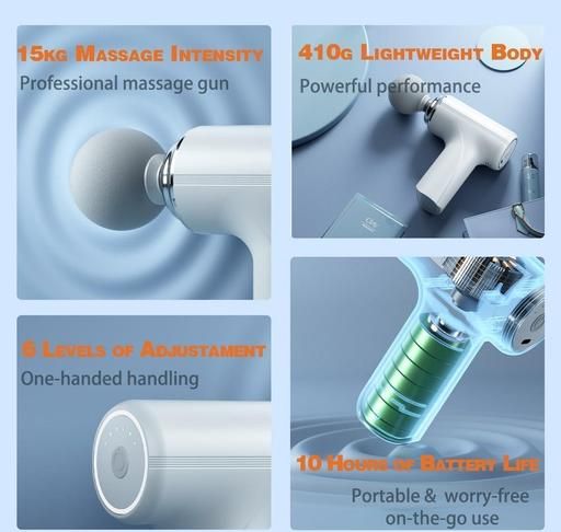 ➤【MINI MASSAGE GUN】: Deep tissue percussion gun massager designed to target sore muscles with high speed vibrations for pain relief and muscle relaxation.