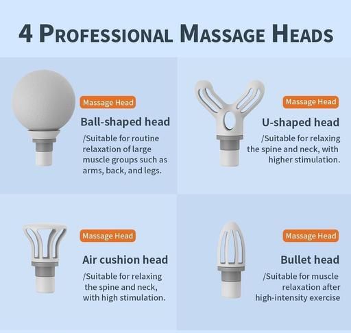 ➤【4 MASSAGE HEADS】: Round Head, Massage Head, Flat Massage Head, Fork Massage head ➤【CHANGE SPEED】: 9 Speed settings from low to high. Press +/- button to change speed