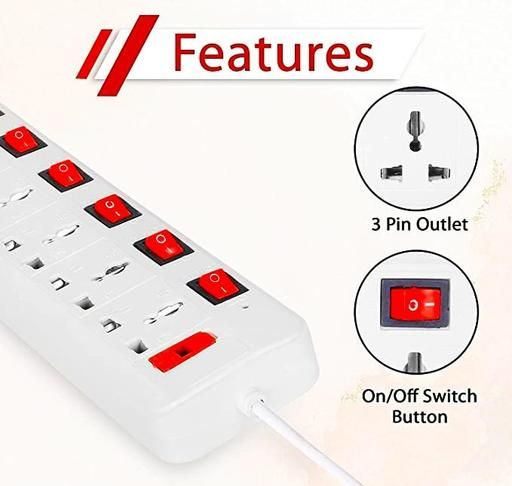 this breakage free extension is very versatile too! main features this reliable extension cord is long lasting and non-flammable. This 8 socket extension comes in a round shape. The cord can be wound into the extension itself. The multiplug extension cord is white in and has one button that is used for all the sockets together and there is a use inside of the board. The led turns on when the electricity is passing through and turns off when it is not. It can support many devices together.