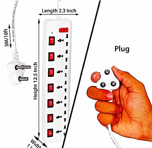 7 Socket Universal multi-plug extension cord has been perfectly crafted for continuous and heavy usage. Robust material this multi-port extension cord consists of top-grade high plastic. This material makes the external