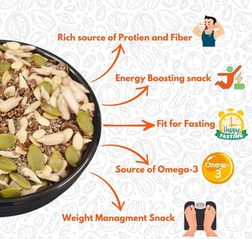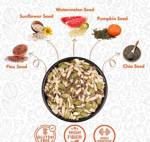 Name: - 5 in 1 Mix Seeds For Weight Loss | Include Chia, Flax, Pumpkin, Sunflower & Watermelon Seeds | Rich Source of Omega-3 & Anti-Oxidants Rich l Good For Skin, Hair & Health l Healthy Diet Mix Seeds_200gm