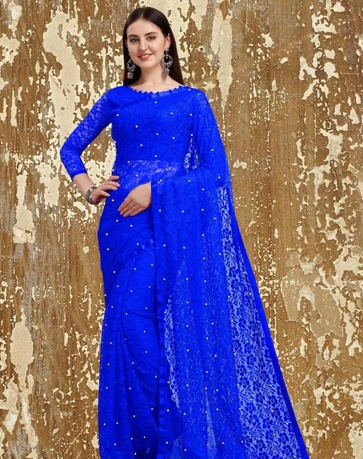 Saree Materials Soft Brasso Net Having Flower Design with perl and Lace Border same as look like as Photos Saree 5.5M Blouse 0.8M