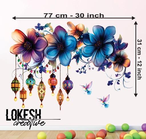 Name: Floral Wall Decal with Lanterns, Decorative Wall Sticker, 77 cm x 31 cm, Multicolour