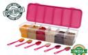 6-in-1 Masala Box for Kitchen, Airtight BPA-Free Plastic 6 Section Storage Container with 6 Spoons, 1800 ml Transparent Pickle Box for Spices, Dry Fruits, Snack (Pack of 1) (pink)