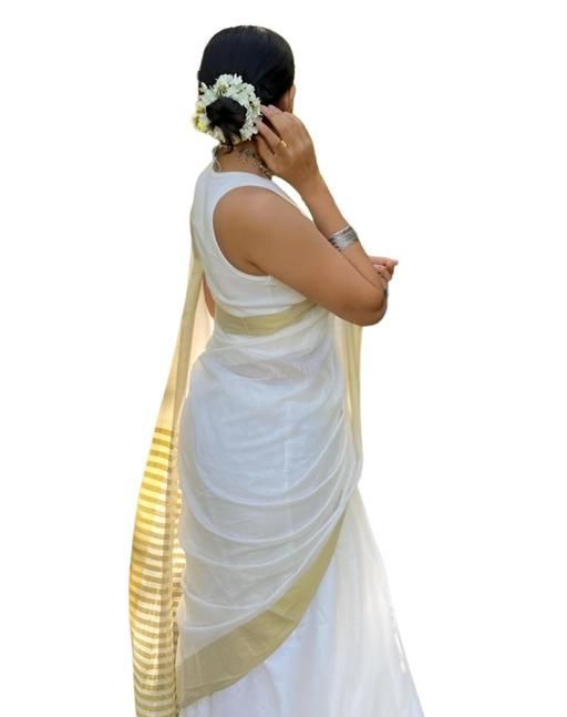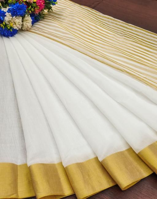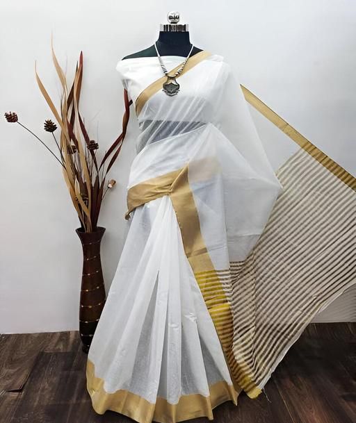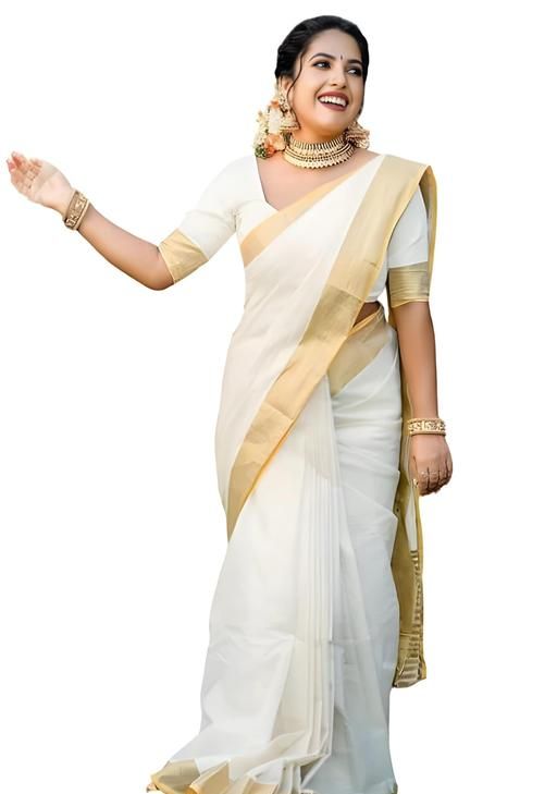 Celebrate tradition in style with this trendy South Indian Kasavu cotton saree! Crafted from authentic, lightweight cotton, this beautiful saree features a stunning solid white with an elegant golden zari border. The intricate zari work adds a touch of opulence, making this saree perfect for festive occasions, pujas, weddings, or any special event.