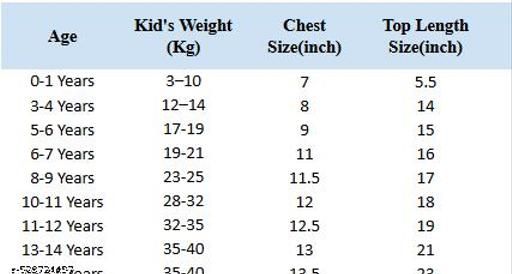 12-13 Years (Chest Size: 17 null, Length Size: 23 null)