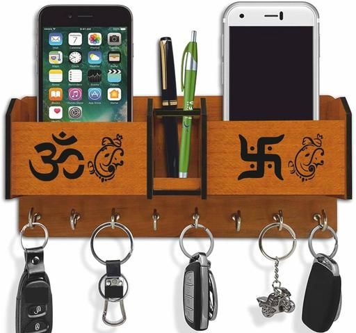 Name: om swastik Designer Wooden 8 Hook Key Holder Home and Office