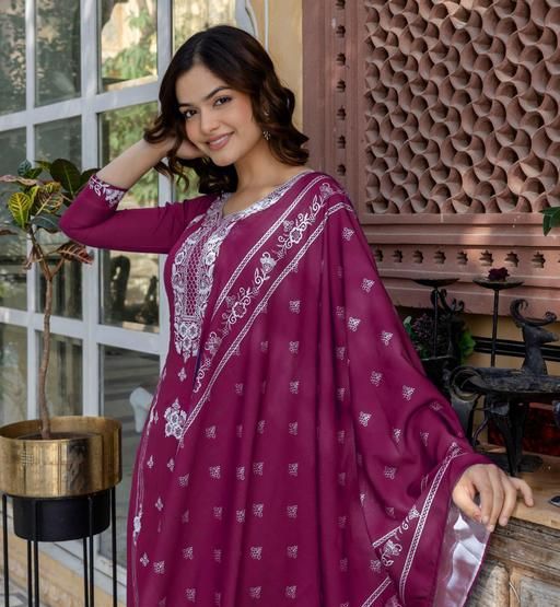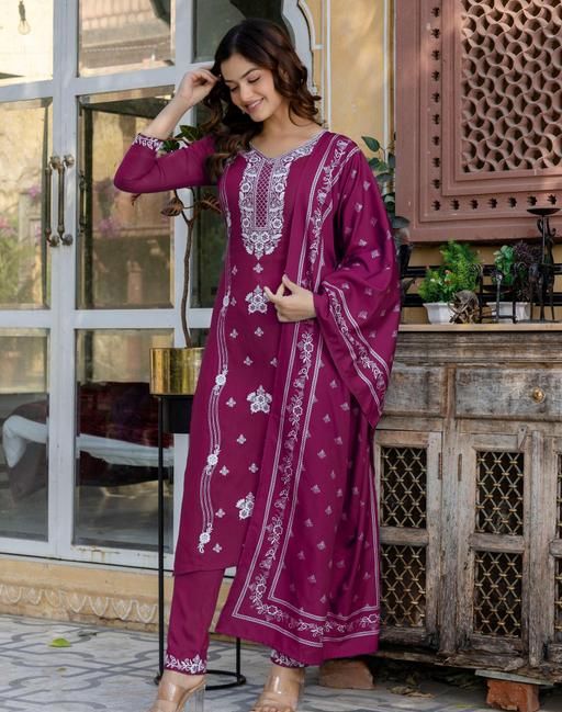 Looking for a versatile piece? This kurti pant set with dupatta transitions seamlessly from day events to evening functions. With rich embroidery and a touch of Bollywood glam, it's also perfect as a patiala suit readymade style alternative for those who want a little extra flair.