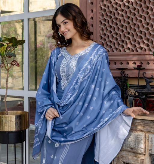 Looking for a versatile piece? This kurti pant set with dupatta transitions seamlessly from day events to evening functions. With rich embroidery and a touch of Bollywood glam, it's also perfect as a patiala suit readymade style alternative for those who want a little extra flair.