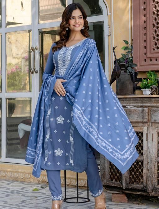 anarkali suit women | kurti set with dupatta | kurti pant set with dupatta | cotton kurta set with dupatta | patiala suit readymade | Women Embroidery Bollywood Style Kurta and Pant set with Dupatta