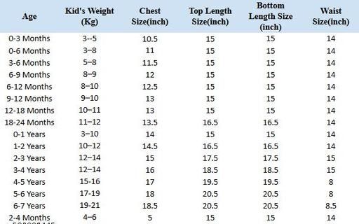 5-6 Years (Top Chest Size: 25 null, Top Length Size: 17 null, Bottom Waist Size: 15 null, Bottom Length Size: 13.5 null)