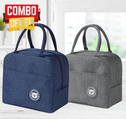 Name: CROSSLINE COMBO LUNCH BAGS, Lunch Bags for Women Men, Reusable Insulated Leakproof Lunch Box Tote Bag, Cool Bags for Kids Girls Boys Adults, Thermal Cooler Bag for Work School Picnic Travel (Blue, Grey)