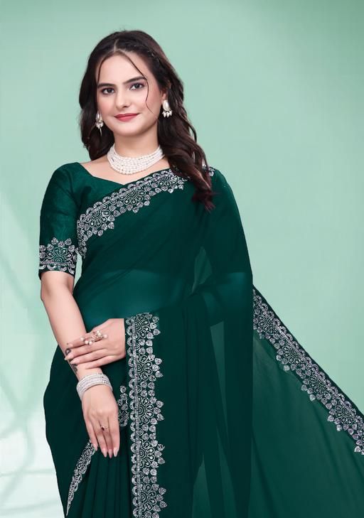 NEW GEORGETTE hotfix WORK sarees. SAREE