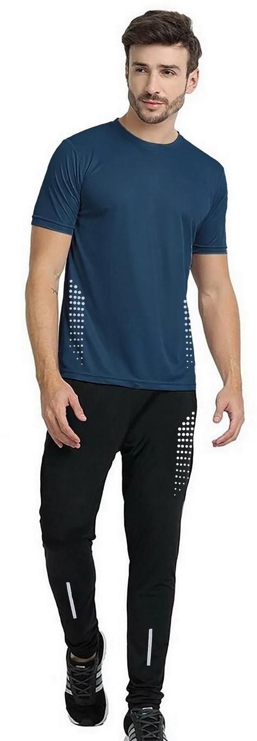 Men's Activewear Track Suit Set - 2-Way Stretchable T-Shirt & Lower Combo - Athletic Casual Wear Elastic Waistband, and Pockets.