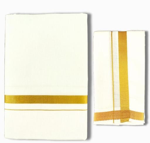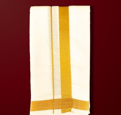 A gold jari dhoti is a luxurious and traditional garment, perfect for special occasions and ceremonies. Crafted with fine fabrics like cotton or silk, it is adorned with intricate gold jari (metallic thread) borders or patterns, adding a touch of elegance and richness.