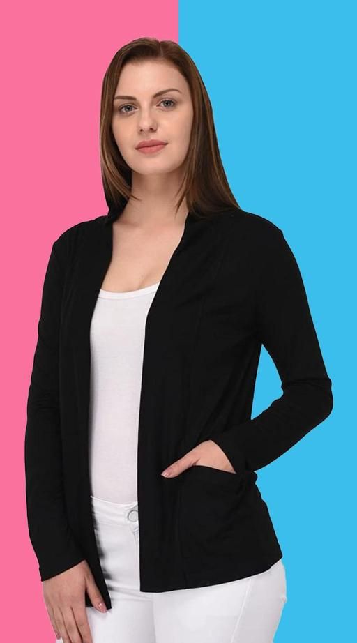 Name: Casual Solid Open Long Trendy Stylish Shrug Girls 'Woven Elegant Printed "Women's Pure Cotton Pocket solid pocket full sleeve