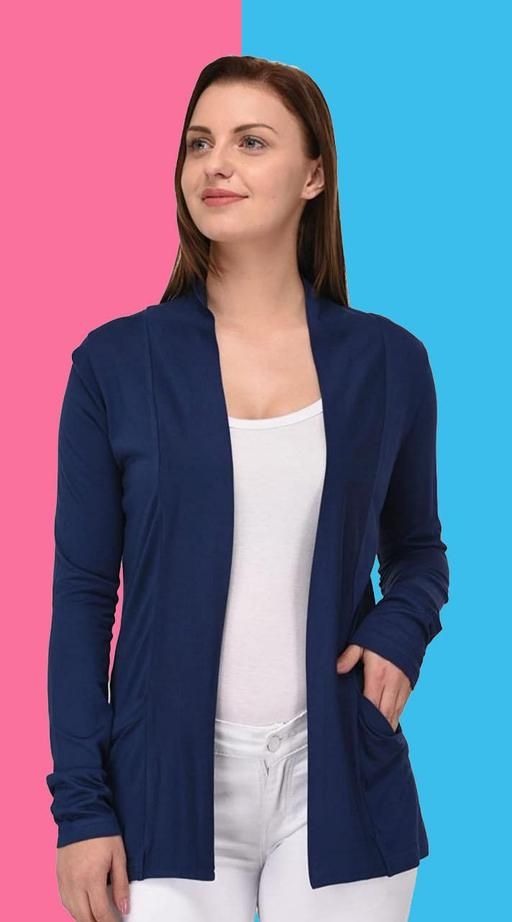 Name: Casual Solid Open Long Trendy Stylish Shrug Girls 'Woven Elegant Printed "Women's Pure Cotton Pocket solid pocket full sleeve