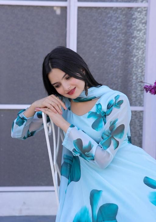 Name: Festival wear Georgette fabric long full flared anarkali gown with dupatta set, party wear dresses, wedding wear dresses, suits for eid